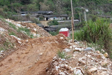 圖1沿著這樣的山路,4驅的汽車約20分鐘,到達大理石礦山的開采點。