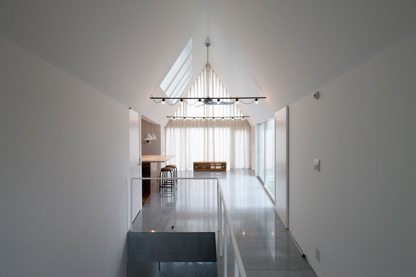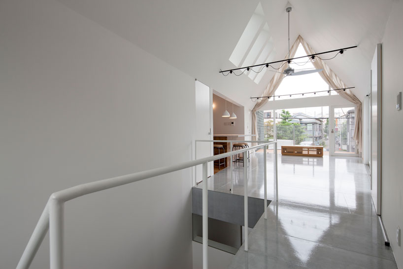 項目位于東京一處不規則的住宅區內,starpilots事務所設計的這處“housecut”,是一棟帶有他們個人辦公空間的家庭住宅。地塊位于街角的位置,不規則的形式拆分成了三個高大的結構,其中中間的體塊與兩側相比后退了一部分,形成了一處受庇護的門廊。將這棟建筑拆分成三個體塊是因為該地塊正處于城市道路建設規劃之中。因此,如果該規劃通過,其中一個體塊就會被拆掉。這三個體塊每個都有自己獨立的入口,同時結合整體規劃,該住宅也提供了該家庭殯葬公司的空間。