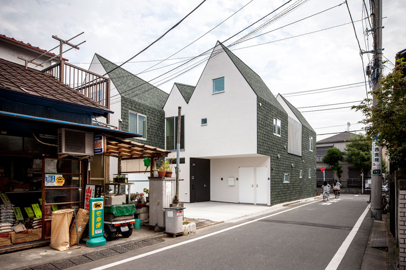 綠色屋面瓦覆蓋的日本“housecut”住宅