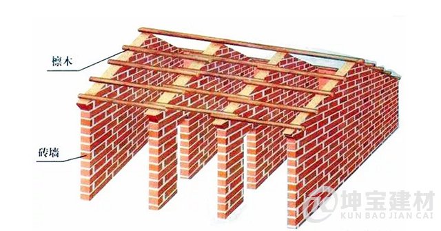 另外一種棒式框架是檁條(purlin)持力,在我國廣泛采用。如直接將檁條擱在橫向山墻上,形成硬山擱檁。然后在檁條上鋪設與其方向垂直的椽條,再鋪望板,***后再考慮瓦屋面做法。