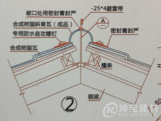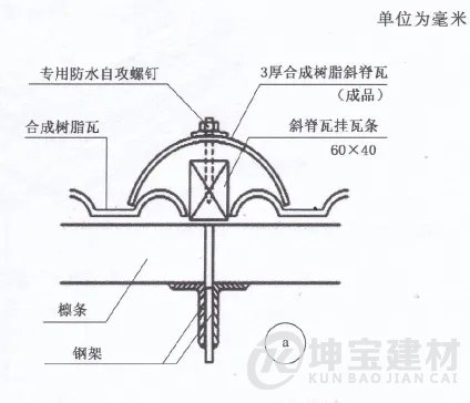 4 選用有邊斜脊瓦時,應將其固定在主瓦掛瓦條上。