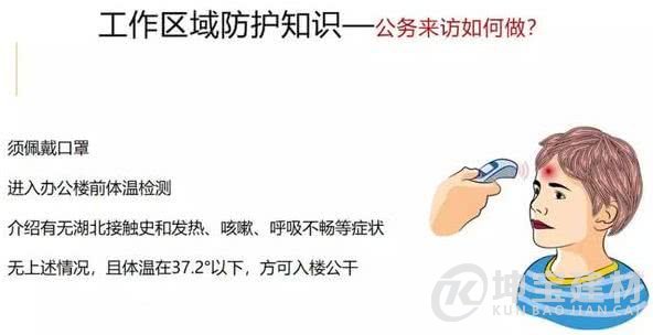 須佩戴口罩。進入辦公樓前首先進行體溫檢測,并介紹有無湖北接觸史和發熱、咳嗽、呼吸不暢等癥狀。無上述情況,且體溫在37.2°正常條件下,方可入樓公干。