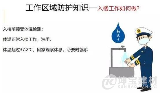進入辦公樓前自覺接受體溫檢測,體溫正常可入樓工作,并到衛生間洗手。若體溫超過37.2℃,請勿入樓工作,并回家觀察休息,必要時到醫院就診。