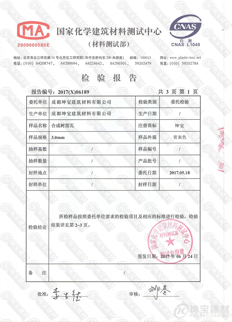成都坤寶建筑材料有限公司(以下簡稱:坤寶樹脂瓦),維信致遠,如果沒有誠信,不可能有企業未來的遠大前景。