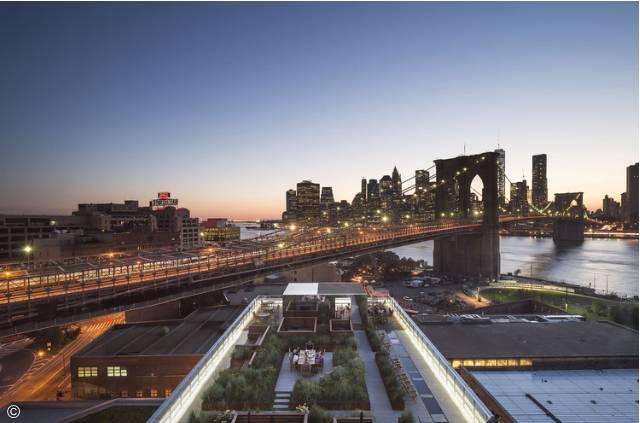 在紐約曼哈頓一家知名廣告公司的辦公大樓,樓頂被改造為員工放風、PARTY、喝酒的小花園;曼哈頓兒童學校的樓頂,有一家名為“布萊特農場”公司的屋頂農場,專門為孩子們提供“特供菜”;除此之外,布魯克林區甚至還有蜜蜂養殖的屋頂農場。