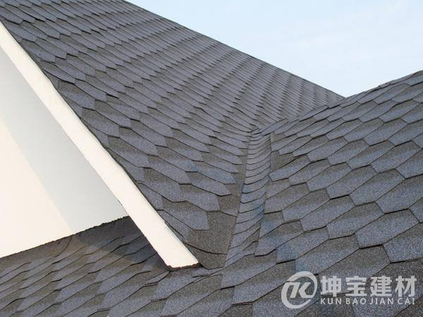 瀝青瓦是以玻璃纖維氈為胎體,經浸涂優質石油瀝青后,瓦片一面覆蓋彩色礦無粒料物質,另外一面撒以隔離材料所制成的瓦狀屋面防水片材,它具有良好的防水、裝飾功能和色彩豐富,形式多樣,質輕面細,施工簡便等特點。缺點是容易老化。