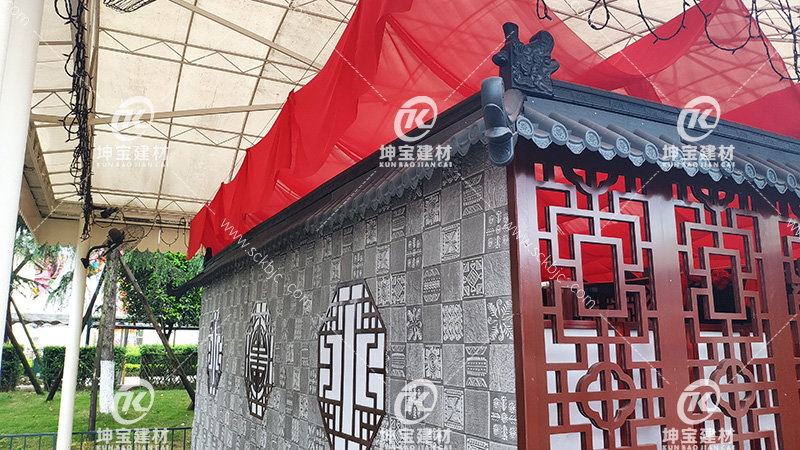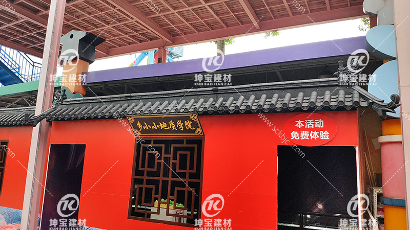 溫江區國色天鄉陸地公園主題案例效果圖,仿古一體瓦園區隨處可見,仿古效果非常地好,一體仿古仿古屋檐瓦不僅應用于裝飾設計,如餐飲店、古董店、農家樂,還廣泛應用于室外門頭,墻頭等多個地方,成都坤寶建材仿古裝飾瓦生產銷售經驗,目前產品有一體瓦、仿古塑料一體瓦、拼接瓦、室內仿古裝飾一體瓦、墻頭瓦、裝飾墻頭瓦、一體仿古屋檐瓦、塑料一體瓦、裝飾瓦等各種規格瓦專用配件;復古環保、簡潔美觀、不易褪色、簡易搭接,經久耐用。