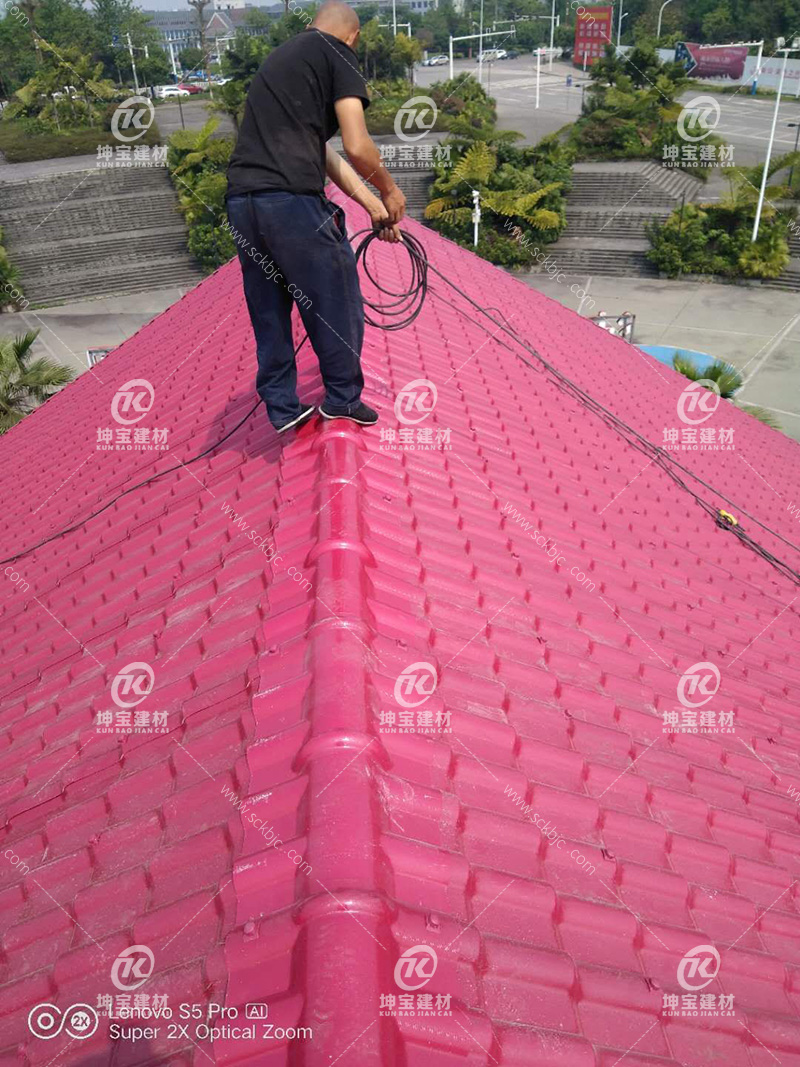 來自瀘州客戶樹脂瓦案例分享:瀘州歡樂派海灘公園游客中心屋頂換瓦項目,面積約4000平米,采用三層白底棗紅色3.0厚樹脂瓦,艷麗光鮮,顏色持久!聽說這個游樂場的老板是個畫圖高手,能手工畫3D圖,頗有藝術(shù)家風(fēng)格!有要去歡樂派海灘公園玩的找我來定門票,有優(yōu)惠