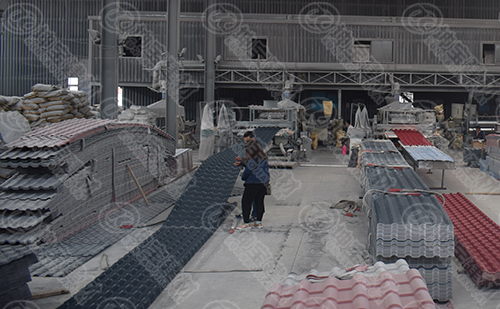 合成樹脂瓦生產流程,咱們坤寶領導親自帶領客戶參觀
