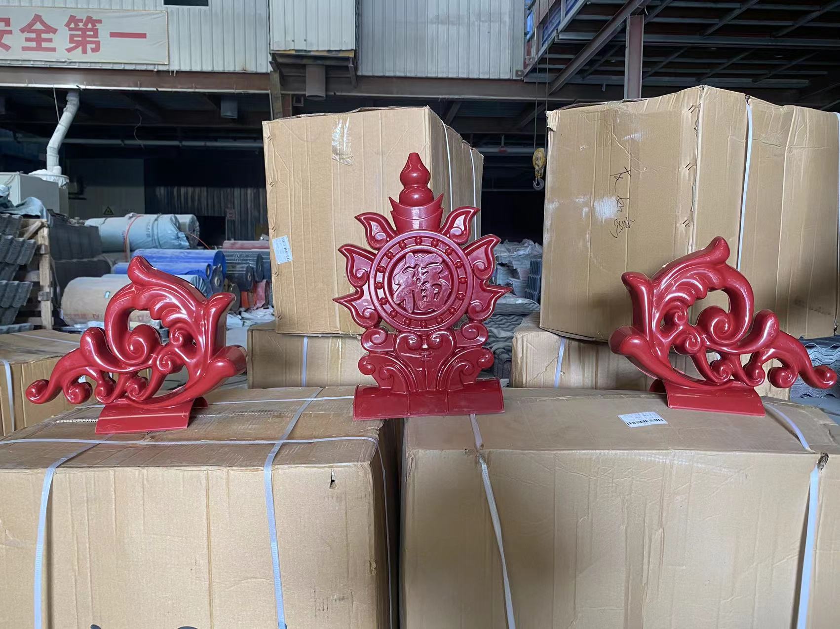 樹脂瓦屋面安裝好后,只有主瓦和正脊瓦總是感覺單調(diào)了一些,沒有滴水瓦和左右封邊,屋頂也沒有雙龍戲珠作為屋頂?shù)呐浼F(xiàn)在坤寶樹脂瓦出了幾款屋頂簡單裝飾的配件【福到】【吉星高照】它采用的pp材質(zhì),有兩種顏色可選紅色與深灰色,安裝起來也比較方便,放在正脊瓦上打上自攻螺絲即可。如果不喜歡這兩種配件,還可以看看其他的樹脂瓦屋頂配件...