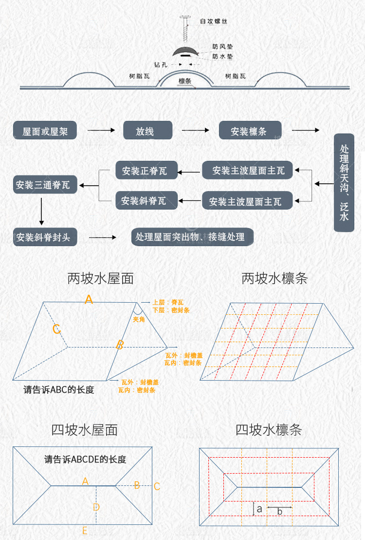 用途:平改坡屋面,別墅屋面,農(nóng)村自建房屋面,民宅屋面,工業(yè)廠房,仿古建筑,涼亭圍墻裝飾等